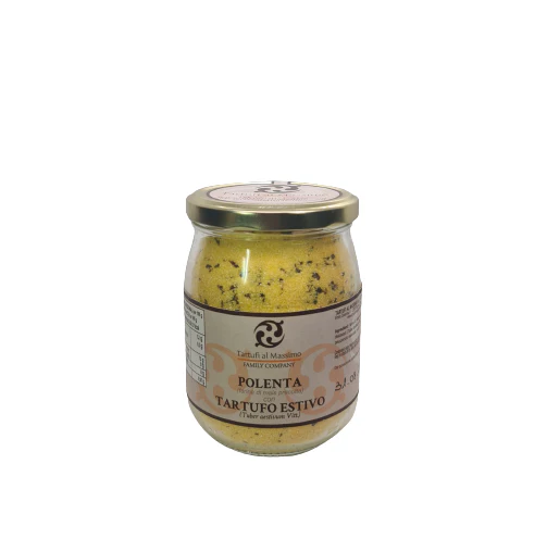 Eines der traditionellsten Gerichte Norditaliens. Die Zugabe von schwarzem Sommertrüffel (Tuber Aestivum Vitt.) verleiht der Polenta einen einzigartigen Geschmack und ein besonderes Aroma.